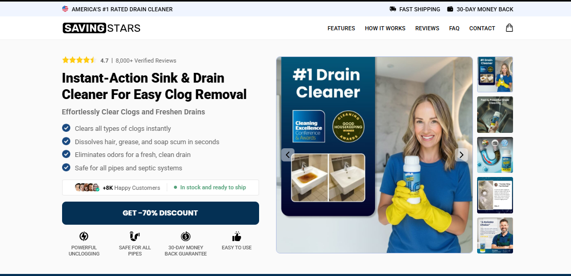 SavingStars Drain Cleaner is designed as a fast-acting, powerful solution to break down stubborn clogs and keep pipes flowing smoothly. In this comprehensive 1600-word guide, we’ll explore what SavingStars Drain Cleaner is, how it works, its key ingredients, benefits, usage instructions, safety guidelines, and why it may be a smart addition to your home maintenance toolkit.